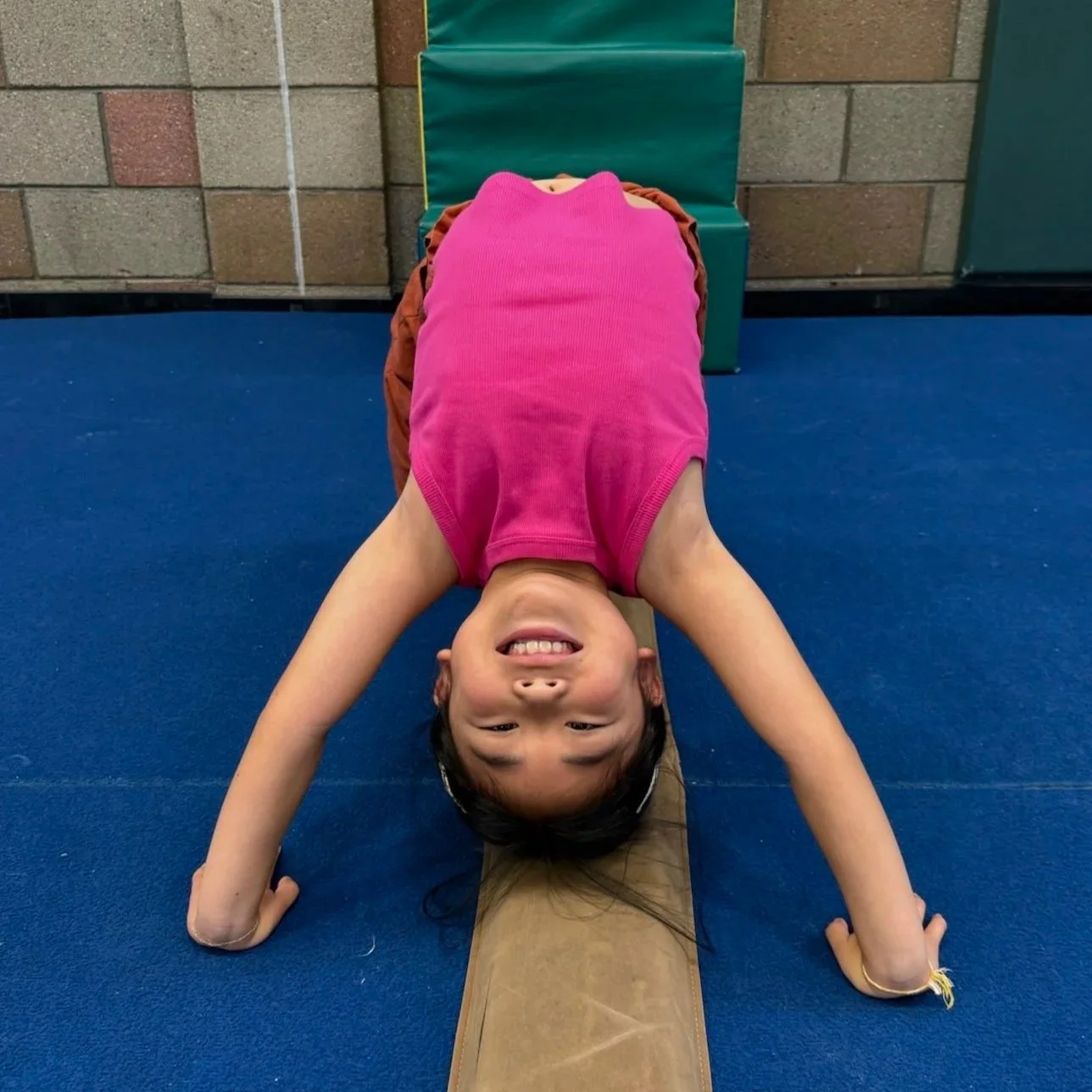 Our Tiny Tots class focuses on building body awareness while learning basic fundamental skills of artistic gymnastics. This class builds coordination, body awareness, balance and flexibility, while encouraging social and motor skills. This class incorporates movement, play, music and fun! Students are introduced to the four apprentices of artistic gymnastics (Floor, Beam, Bar, and Vault) and learn fundamental gymnastics positions and skills.